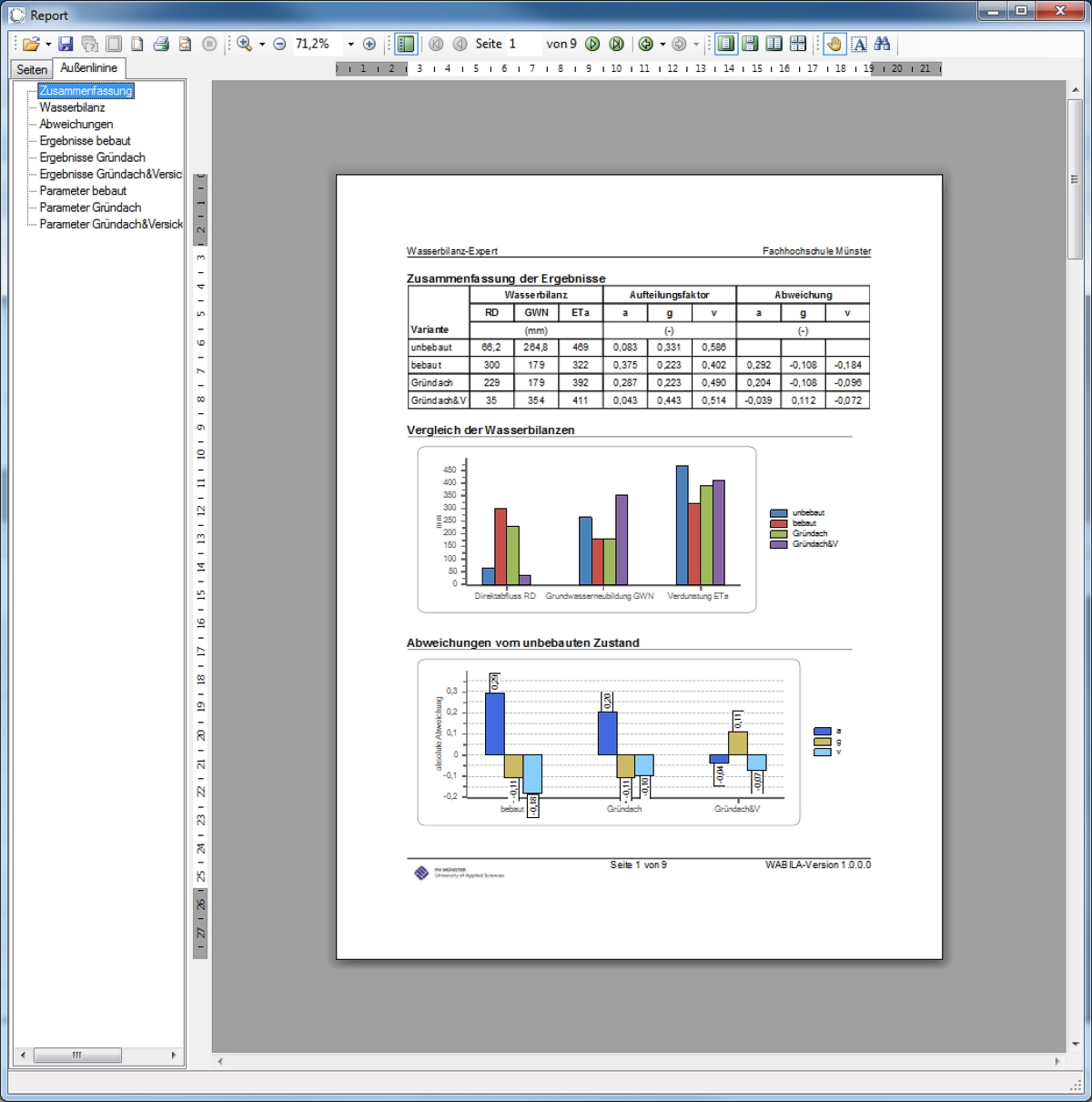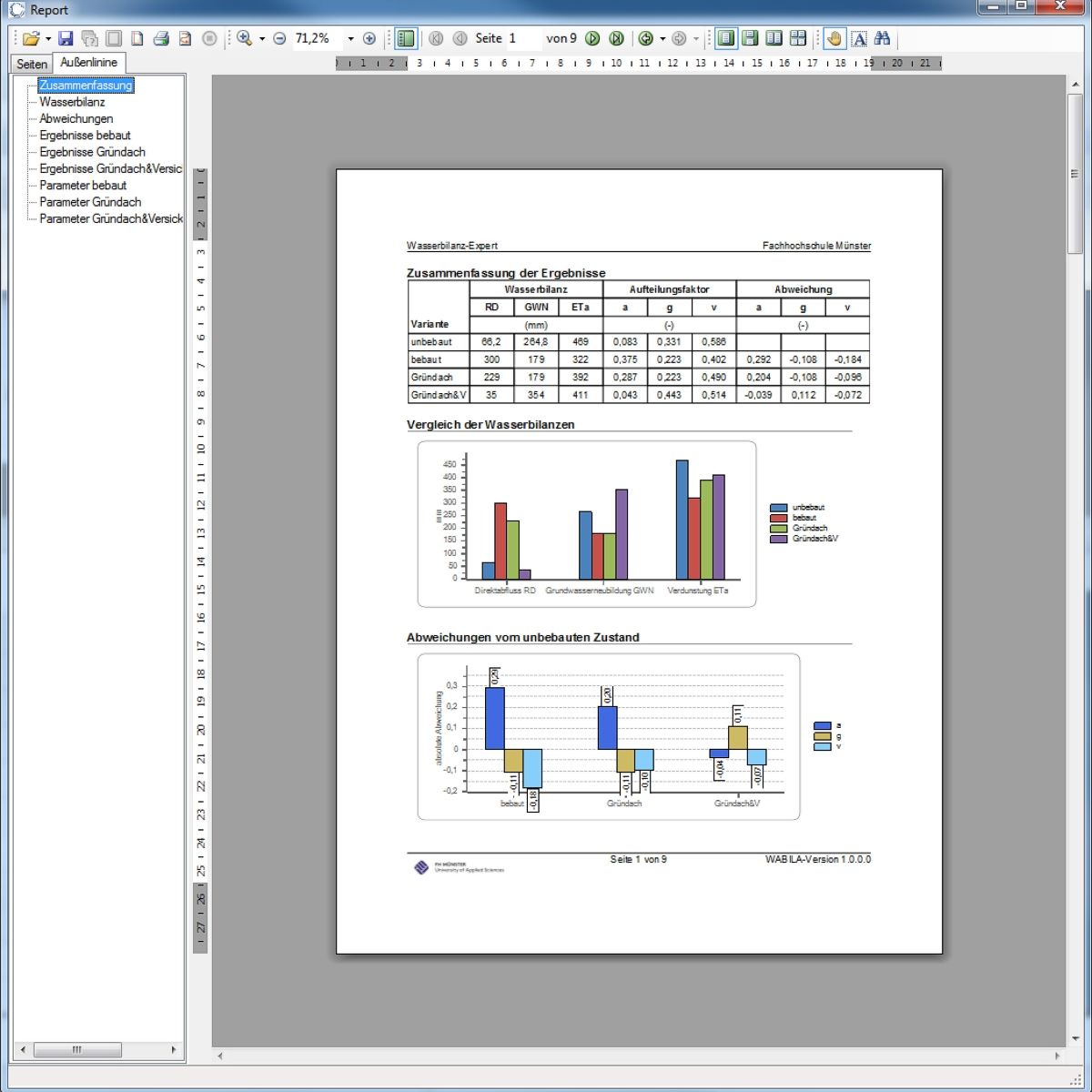 Das vereinfachte Wasserbilanzmodell WABILA als Planungstool ermöglicht eine Auswahl standortgerechter Maßnahmen zur Regenwasserbewirtschaftung, um den lokal unterschiedlichen Erfordernissen des Wasserhaushalts nahezukommen. Das Bilanzmodell für den lokalen Wasserhaushalt ist geeignet, mit überschaubarem Arbeitsaufwand und Datenbedarf im Rahmen der Bauleitplanung Entscheidungsprozesse zur Regenwasserbewirtschaftung zu unterstützen.