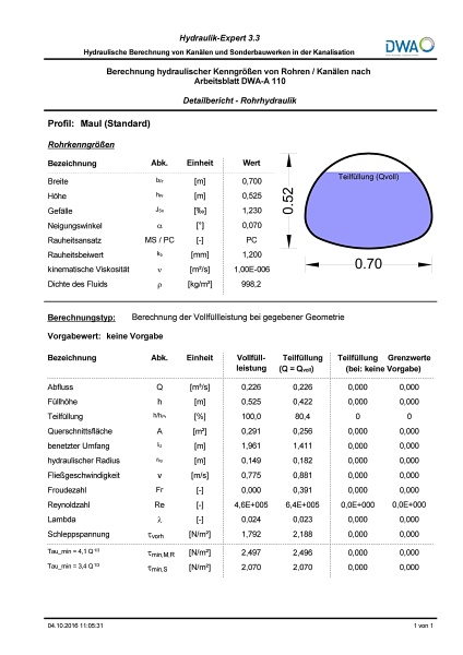 Standard: Die Standard-Version ist genau die richtige Lösung für Anwendende, die eine einfach bedienbare Software als Planungs- und Nachweiswerkzeug entsprechend DWA-A 110 suchen. Zum Leistungsumfang der Standardversion gehören Berechnungen der Rohrhydraulik, Vollfüllleistungen und Rohranalyse (z.B. Ermittlung aller relevanten hydraulischen Kenngrößen für einen gegebenen Abfluss). Die berechenbaren Querschnittsformen reichen über die Standardtypen Kreis, Ei, Maul und Rechteck bis hin zu exotischeren wie Drachen.