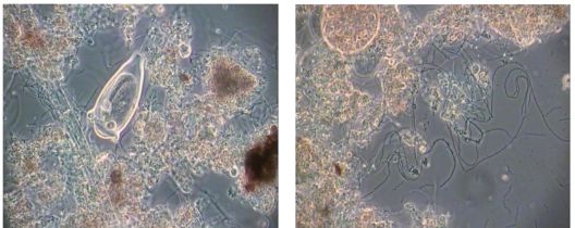 - Mikroskopiere eine Belebtschlammprobe und versuche, verschiedene Ein- und Mehrzeller wieder zu erkennen.