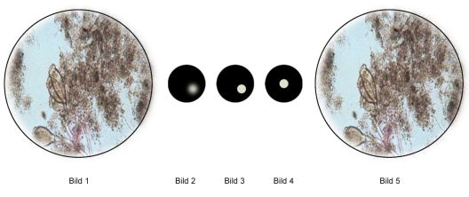 - Präparat bei der kleinsten Vergrößerung „scharf“ stellen (Bild 1)