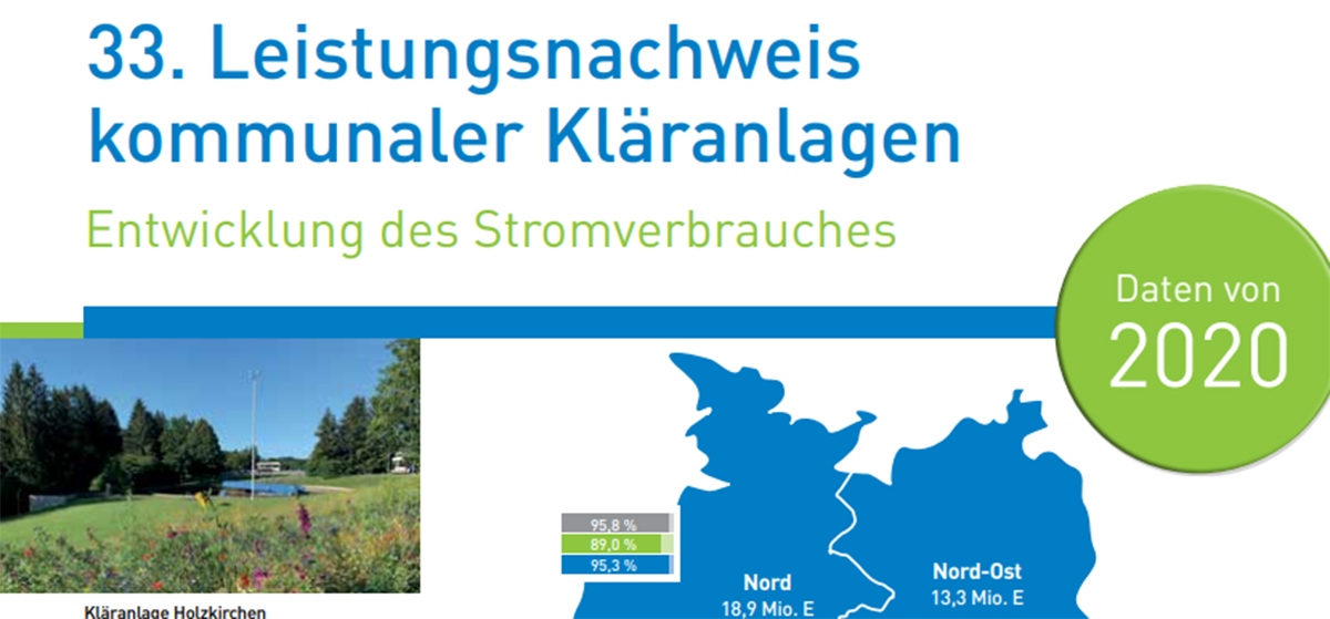 Kläranlagen zählen zu den größten kommunalen Stromverbrauchern – Grund ist vor allem der Energiebedarf bei der Belüftung der Belebungsbecken. Die Abwasserwirtschaft ist sich dementsprechend der Verantwortung hinsichtlich des Klimawandels bewusst und arbeitet seit Jahren gezielt und erfolgreich sowohl an der Reduzierung des Energieverbrauchs als auch an der Ausweitung der Eigenenergieerzeugung – wobei die sichere Gewährleistung der Abwasserbehandlung immer im Vordergrund steht. Der Gesamtstromverbrauch der Kläranlagen konnte seit 2011, in diesem Jahr hat die DWA erstmals den Energieverbrauch flächendeckend erhoben, von 34 kWh pro Einwohner und Jahr auf 31,2 kWh gesenkt werden. Hochgerechnet auf die Gesamtheit der Kläranlagen bedeutet dies eine Reduzierung des Stromverbrauchs der Kläranlagen von rund 4000 GWh im Jahr 2011 auf etwa 3600 GWh 2020.