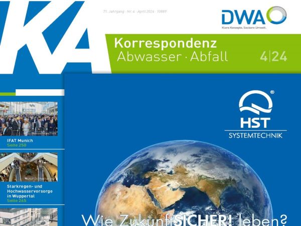 Die DWA-Verbandszeitschrift KA Korrespondenz Abwasser, Abfall (KA) gilt als führende Zeitschrift im Abwasserbereich. Mit einer tatsächlich verbreitetet Auflage von 11.119 Heften (IVW 7/23-6/24) erreichen Sie zielgerichtet die Ingenieur*innen, Meister*innen und Fachkräfte der Branche.