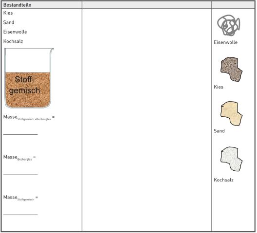 Welche Stoffeigenschaften kann man zur Trennung eines Stoffgemischs aus Sand, Kies, Eisenwolle und Kochsalz nutzen?