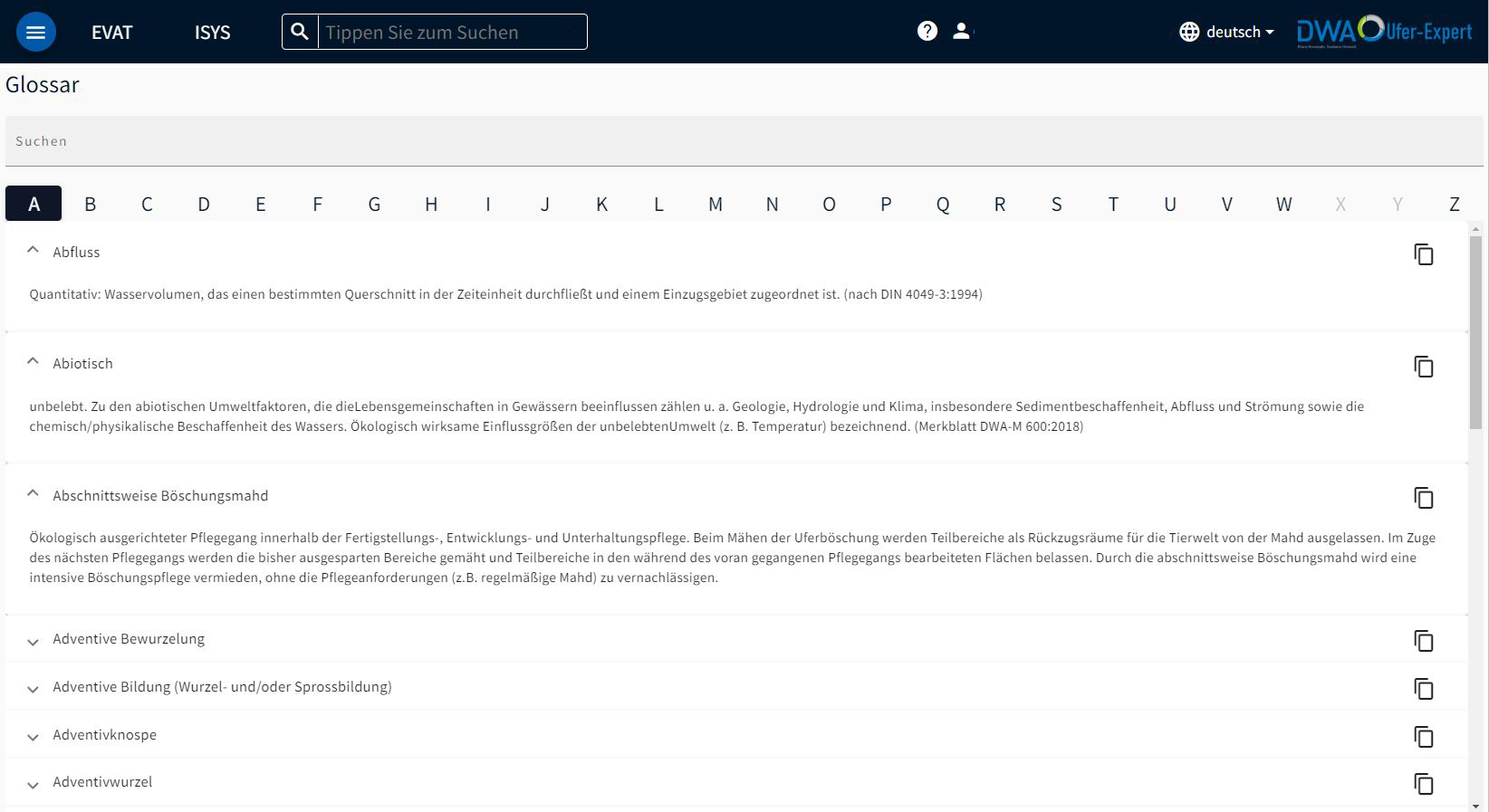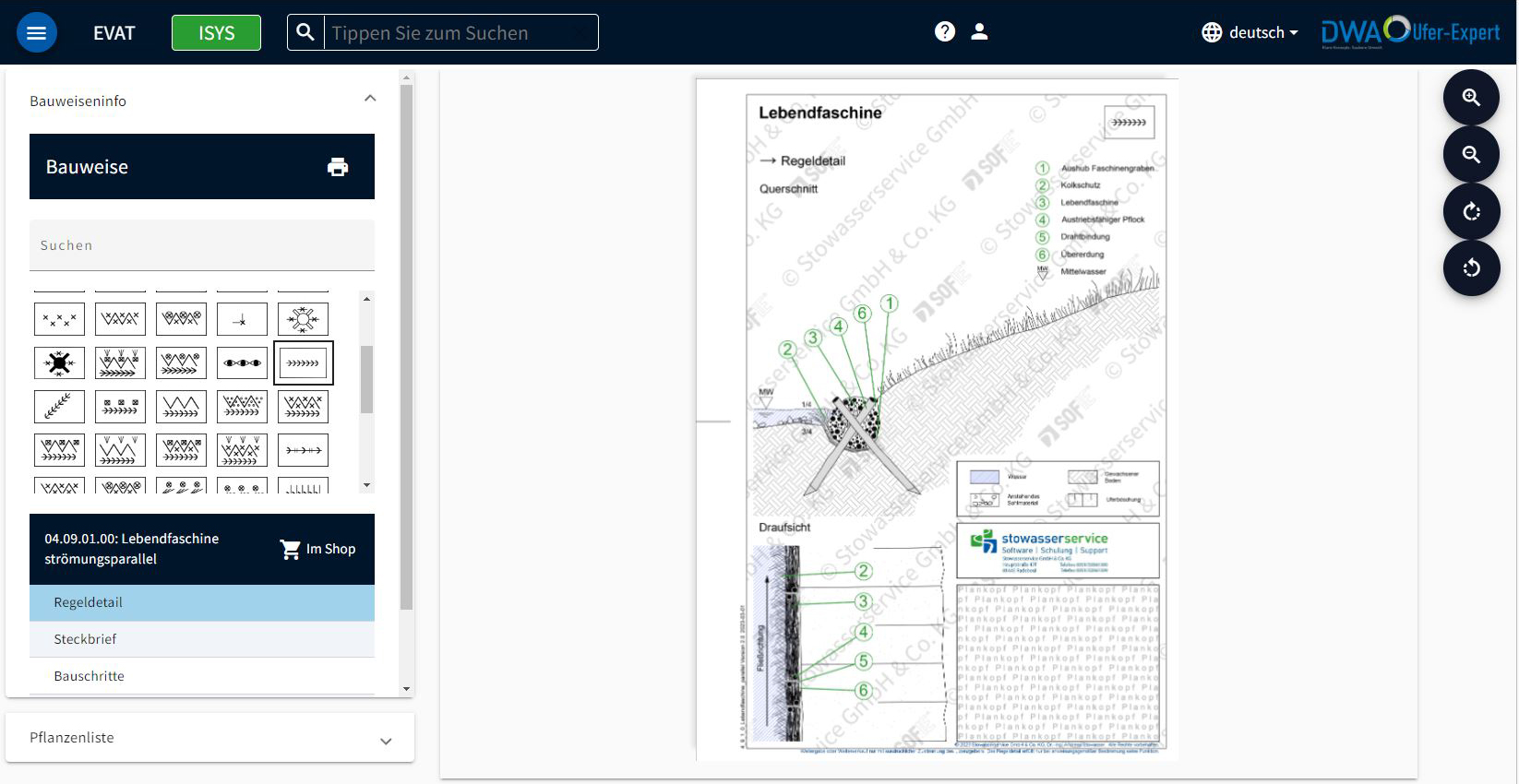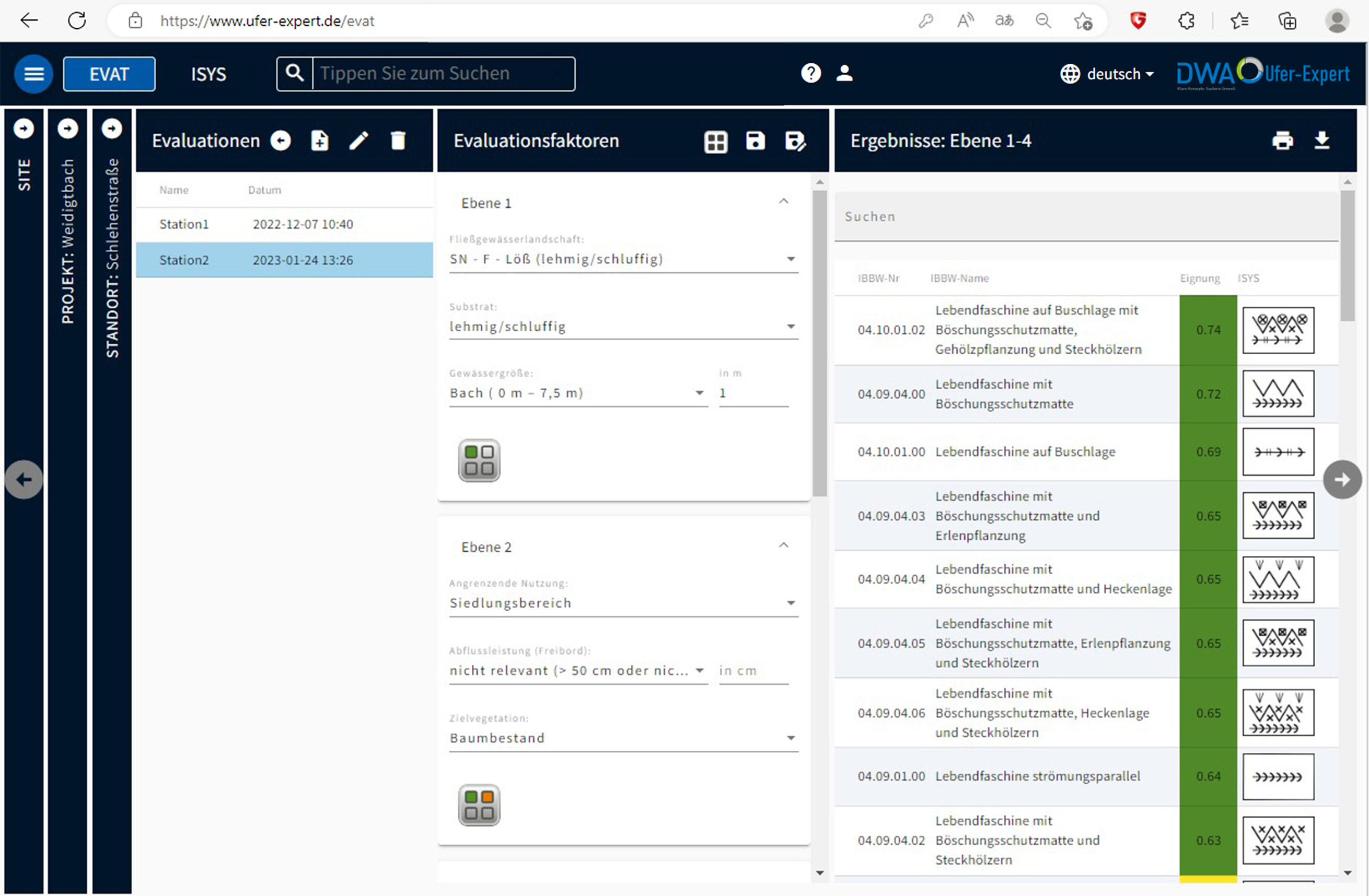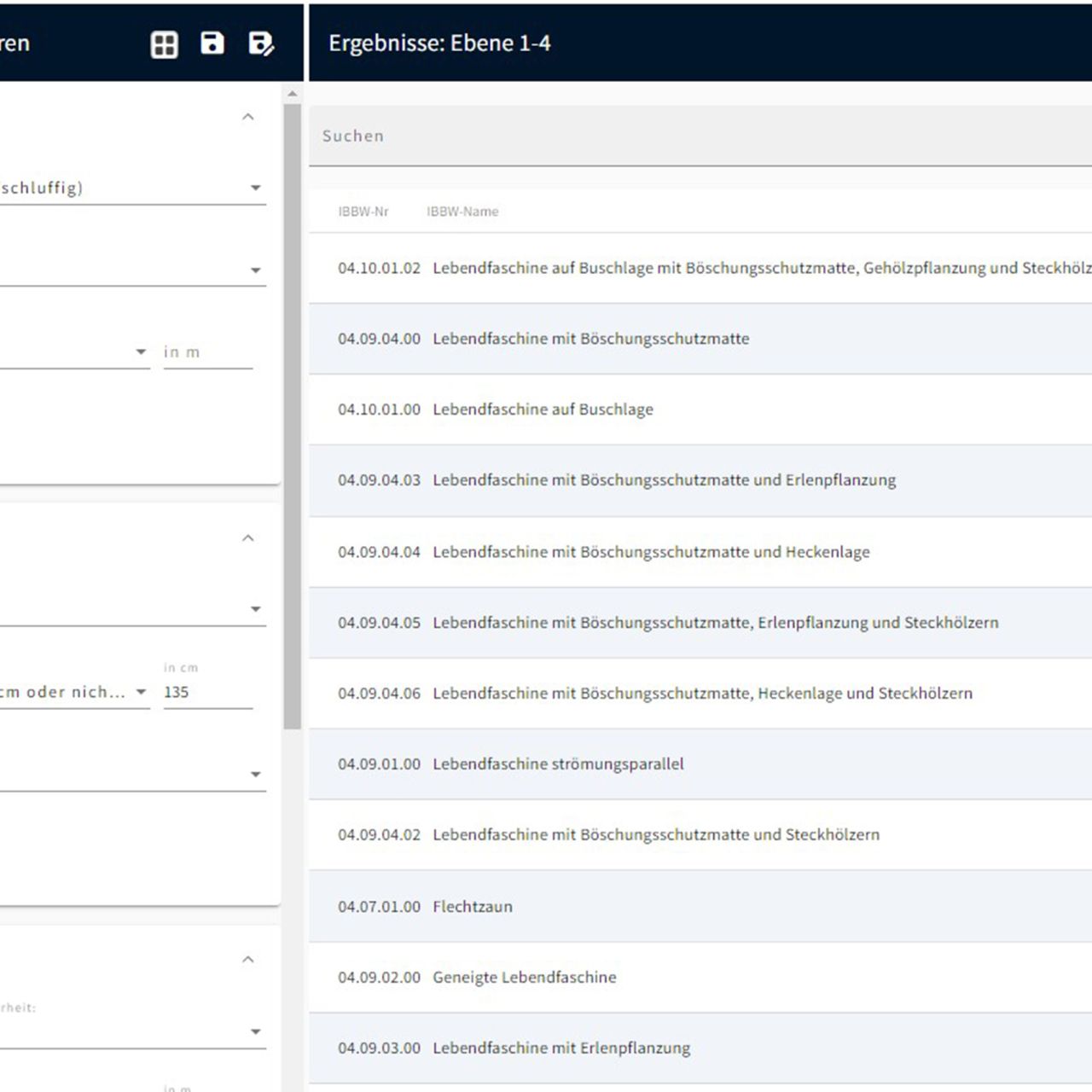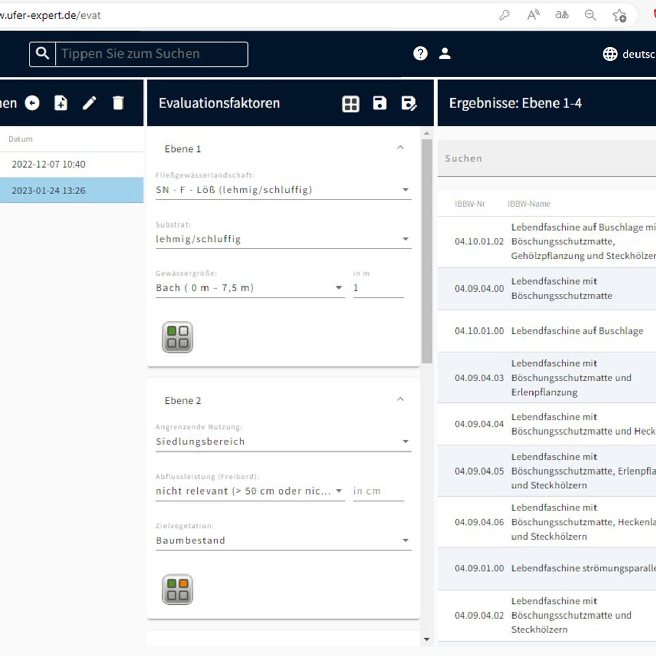 Die Anwendung unterstützt Sie in der Auswahl, Planung und Ausschreibung ingenieurbiologischer Bautechniken. Kernstück ist dabei eine Datenbank mit rund 60 verschiedenen Bauweisen und entsprechenden Anleitungen und Hintergrundinformationen sowie das Regelwerk, die Merkblätter DWA-M 620 Teil 1 und 2. Der Ufer-Expert ist eine Web-Applikation und damit ohne Installation nutzbar.