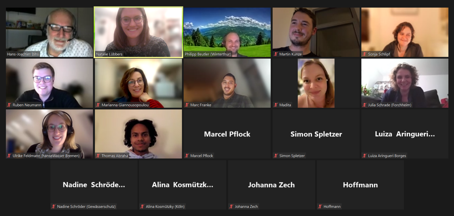 Der letzte Thematische Stammtisch des Jahres 2023 widmete sich am 16. November spannenden Fragen zu Finanzierungsmöglichkeiten von Blau-Grünen Infrastrukturen (BGI) und der Abwasserentsorgung allgemein. Gäste des Abends waren Hans-Joachim Bihs, Vorstand der Wirtschaftsbetriebe Hagen AöR (WBH), und Mascha Overath, wissenschaftliche Mitarbeiterin im Zentrum Klimaanpassung. 24 Teilnehmende fanden sich online am Abend ein, um den beiden sehr aufschlussreichen Vorträgen zu lauschen, Fragen zu stellen und zu diskutieren.