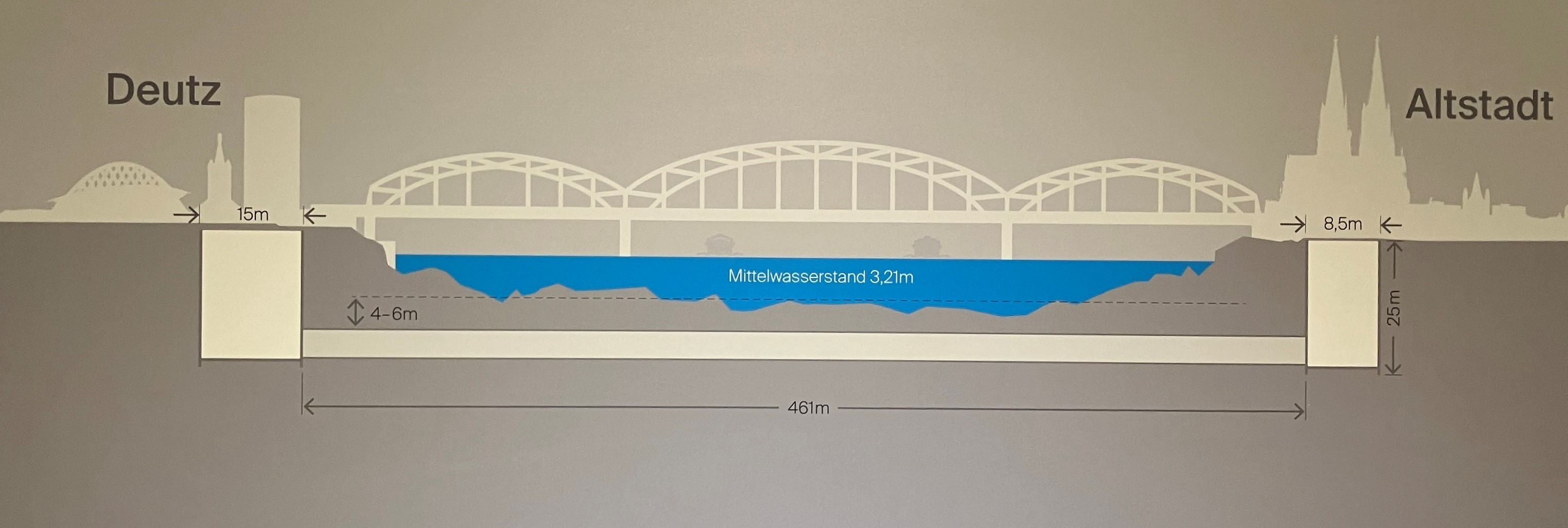 Die RheinEnergie betreibt nämlich von Deutz bis in die Altstadt einen 461 m langen Fernwärmetunnel, der 4-6 m unterhalb des Rhein-Flussbettes verläuft. Im Tunnel mit einem Innendurchmesser von 3 m (Wandstärke 30 cm) sind jeweils ein gut gedämmtes Vorlauf- und Rücklaufrohr (DN 500) enthalten. Mit ca. 12 bar wird etwa 90 Grad Celsius warmes und gefärbtes Wasser von der rechten Rheinseite auf die Schäl Sick befördert und steht somit etwa 30.000 Haushalten zur Verfügung. Erzeugt wird die Fernwärme über ein Gas- und Dampfturbinen-Heizkraftwerk in Niehl.